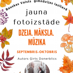 Lasītavā apskatāma jauna fotoizstāde ,,Dzeja. Māksla. Mūzika” Rudenīgajās fotogrāfijās redzami muzikanti un dziesmu autori duets RaDa. Izstādes autors Girts Donerblics ir arī mūsu skolas absolvents. Šīs fotogrāfijas viņš radījis dueta afišām.