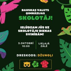 26.septembrī Bauskas Valsts ģimnāzijā  Eiropas skolu sporta diena “Aktīvs solis veselīgam dzīvesveidam” 26.septembrī- diena bez auto- aicinājums Bauskā dzīvojošiem uz skolu nākt kājām, tālāk dzīvojošiem auto un citus transportlīdzekļus nenovietot skolas pagalmā. No plkst.9.00 līdz plkst.14.00 pie mums viesojas ūdens motosportists, Pasaules čempions Formula 4, «#BeActive»  vēstnesis, Bauskas Valsts ģimnāzijas absolvents Nils Slakteris. Sporta stundās Read more about Eiropas skolu sporta diena[…]